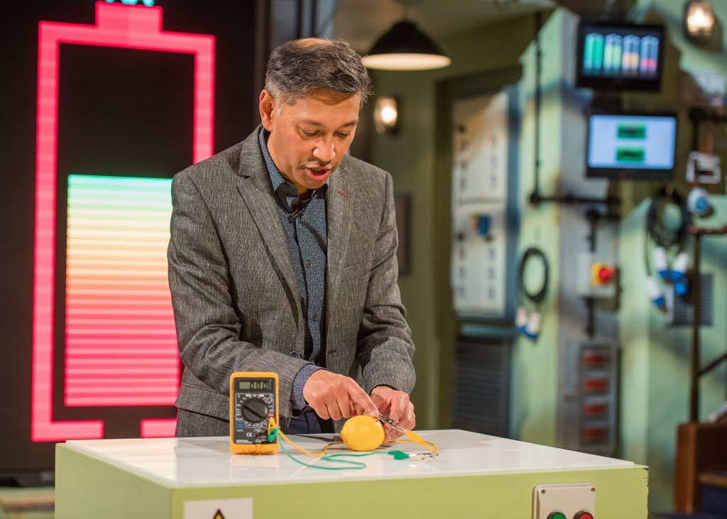 I work on batteries and although it’s a simple experiment, if you explain it right you can explain how a battery works. It gets across the concepts of a couple of metal electrodes, the lemon and the lemon juice as the iron conducting electrolytes, and that can produce a bit of electricity.